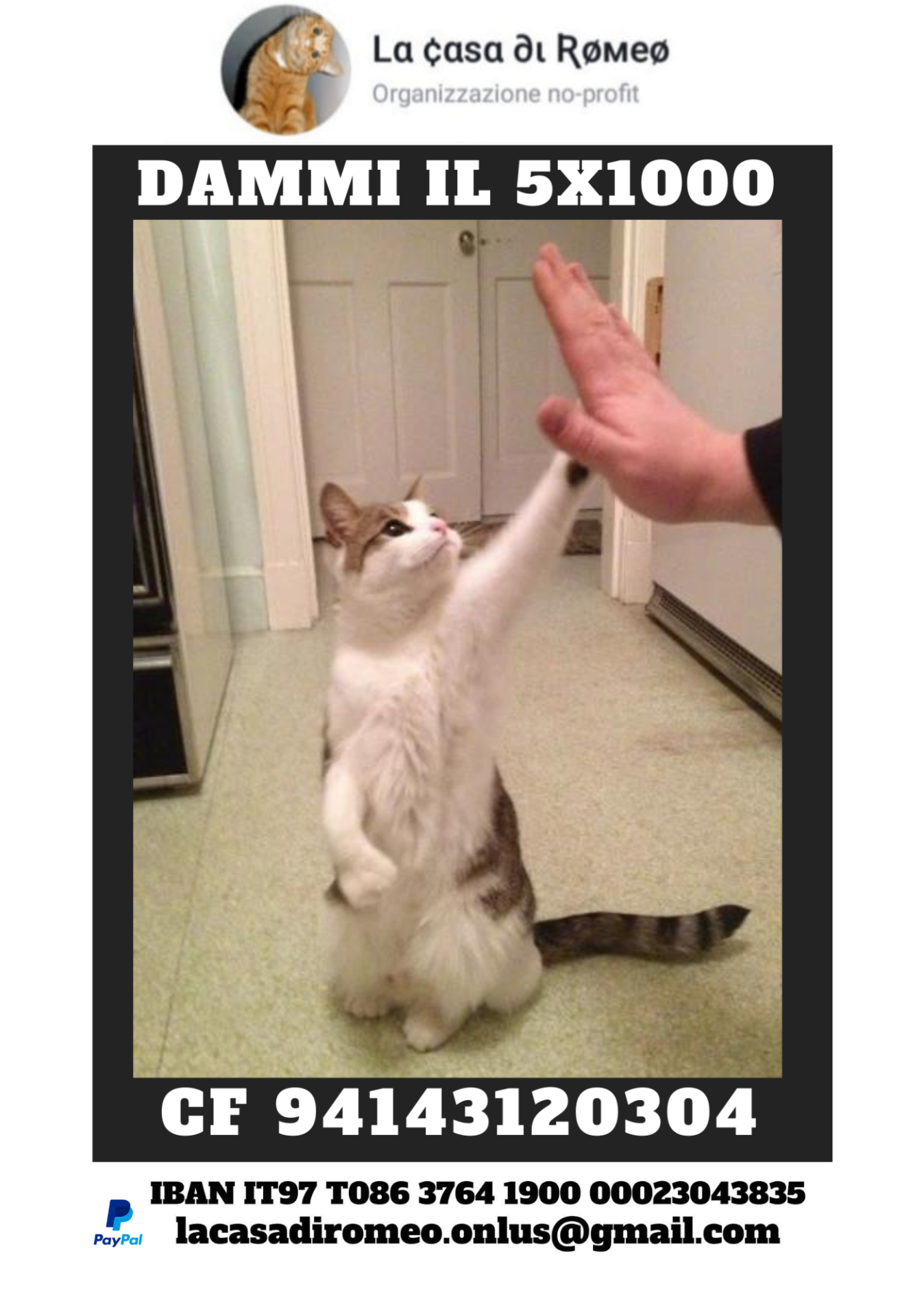 Con una donazione a PayPal lacasadiromeo.onlus@gmail.com